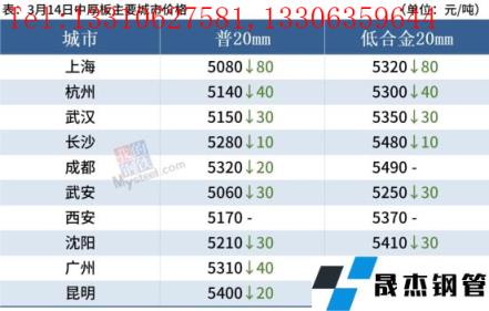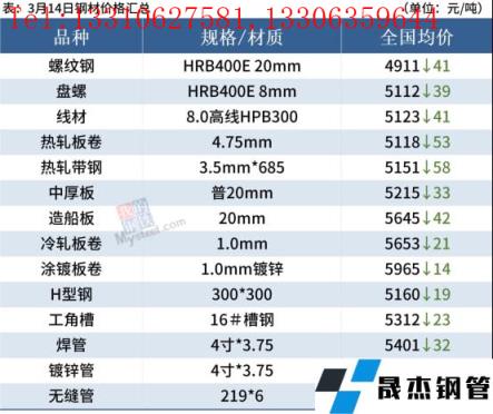 中厚板:3月14日,全国24个主要城市20mm普板均价5215元/吨,较上个交易日下跌33元/吨。今日期市接连下行,市场心态不佳,长三角区域午后接连补跌,受近期运力下降,下游单位按需采购,无缝厚壁钢管厂家整体产量有所提升,贸易商对后市较为悲观,投机性锁价订单比例降低,市场发生降价保销现象,预计15日中厚板价格继续偏弱运行。