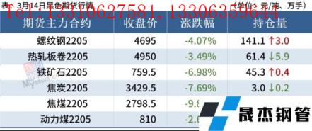 热轧板卷:3月14日,全国24个主要城市4.75mm热轧板卷均价5118元/吨,较上个交易日下跌53元/吨。黑色商品期货市场大幅下挫,下游采购量观望,商家心态悲观,全天成交清淡。综合来看,当前疫情呈现复发,刚需释放有限,商家预期迷茫。短期钢价震荡运行,既因为情绪受到期货市场的引导,又因为需求没有放量的迹象,而无缝厚壁钢管厂家起到"托举"的作用。综合来看,预计15日热轧板卷价格或震荡下行为主。