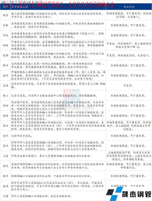 目前,钢晨库(马鞍山钢晨钢铁物流园有限公司)资源基本可以正常提货、发货,且日发货量基本恢复,目前仓库现有厚壁无缝钢管库存20万吨左右,涉及建筑厚壁无缝钢管、热轧板卷、冷轧板卷、型钢,今日累计发货量基本达到7000吨。据了解,目前仓库依旧在整合货运资源,并要求汽运司机每日核酸检测,以达到发货正常。长江钢铁厂发汽运资源暂未恢复,火车运输正常发货,后续情况会持续关注。