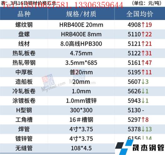 进口矿:3月16日,山东地区进口铁矿石现货市场价格偏强运行,市场交投情绪尚可。截止发稿,山东地区了解到部分成交:青岛港:超特粉600元/吨(上午);日照港:超特粉600元/吨(上午),PB粉910元/吨(上午),PB粉935元/吨。早间山东主流市场报价相较于前一工作上调20-25元/吨,山东地区PB粉主流报价在920-930元/吨附近。午后价格持涨运行,部分贸易商挺价心态明显,成交价逐渐拉涨;山东地区受疫情影响,汽运受阻,无缝厚壁钢管厂家询盘一般。