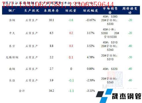 江苏优特无缝厚壁钢管厂家棒材总库存34.2万吨,较上周下降1.1万吨,环比降3.12%,较去年同期下降7.97万吨,同比降18.9%,目前江苏优特无缝厚壁钢管厂家除东方特钢一条棒材线检修外,其余无缝厚壁钢管厂家正常生产。