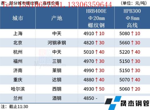 ◎上海:17日早盘建材市场价格小幅上涨10。现螺纹4840-4880,西城抗震4870,其他4690-4750,兴鑫抗震4760,联鑫黄海抗震4770,盘螺4970-5100,高线亚新4910。(单位:元/吨)