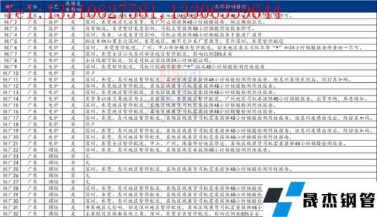 近期受疫情扩散影响,深圳、东莞多地区工地停工停产,公交地铁停运,对建筑用钢需求端造成较大影响。根据疫情防控的相关要求,广东省多数生产企业为保障疫情防控工作,为有效管控疫情传播扩散风险,全力保障无缝厚壁钢管厂家及市场安全。经调研广东大部分无缝厚壁钢管厂家受到物流出货影响,部分疫情严重地级市无法正常配送及发货,多数无缝厚壁钢管厂家对于疫情严重地区暂停配送,小部分地区需要司机提供48小时核酸检测阴性报告。据悉,目前疫情严重地区主要以深圳、东莞及惠州地区为主。而从最新了解的情况来看,受疫情影响主要无缝厚壁钢管厂家暂停配送影响比例在三成左右,不少地区继深圳、东莞、惠州之后,防控加码,如韶关、中山、珠海以及清远地区,目前珠三角地区主要就佛山和江门市暂无防疫要求。目前目前各无缝厚壁钢管厂家详细提货及影响运输要求见下表明细。后期政策变动情况,请具体咨询当地无缝厚壁钢管厂家。
