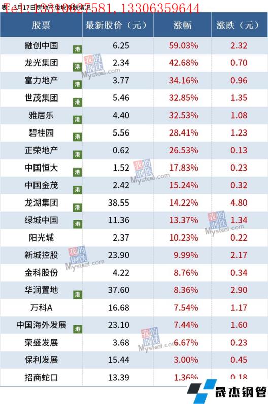 3月17日,AH股房地产板块涨幅明显。港股方面,融创中国涨幅高达59.03%,龙光集团、富力地产、世茂集团以及雅居乐涨幅均超30%。A股方面,阳光城涨停,新城控股、金科股份、万科A、荣盛发展涨超5%。