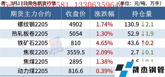 焦炭:3月17日,焦炭市场偏稳运行。各地疫情复发影响甚广,车辆进出严格管控,部分多转火运出货,汽运暂时受限,两会后焦企方面开工有所恢复,计划提产,但利润微薄甚至亏损,库存保持低位运行,短期焦炭供应仍难有明显增长。下游无缝厚壁钢管厂家高炉复产,受疫情影响物流受阻,无缝厚壁钢管厂家库存低位,仍然积极补库中。原料端产地部分煤矿煤价仍有小幅上涨现象,但竞拍市场出现流拍现象,整体成交情况近期已明显走弱,预计短期内焦炭市场偏稳运行,后期需继续关注疫情影响、原料成本、成材利润对焦炭价格的影响。