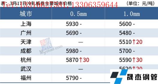冷轧板卷:3月17日,全国24个主要城市1.0mm冷卷均价5635元/吨,较上个交易日上涨9元/吨。受疫情影响部分中高风险地区车辆货物实行临时管控,导致资源不能送到终端客户,局部区域出现降库放缓,甚至出现库存回升的风险;当前市场成交较差,交投氛围较为冷清,下游客户以按需采购为主,需求持续疲软。库存方面,据不完全统计,现冷轧无缝厚壁钢管厂家库存33.94万吨,周环比减少0.63万吨,社会库存143.12万吨,周环比减少0.28万吨,周消费量83.12万吨,环比增加2.90万吨。综合来看,故预计18日国内冷轧板卷价格或将震荡运行。