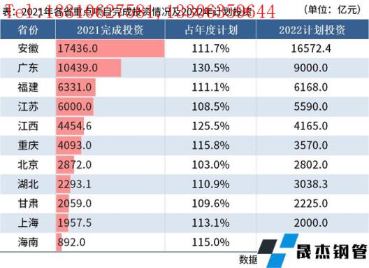 ◎ 据不完全统计,截至3月16日,已有11个省份公布其2021年重点项目完成投资情况和2022年计划目标。2022年,上述11省份共计划投资近5.6万亿元,其中安徽省计划投资超1.65万亿,排名第一。