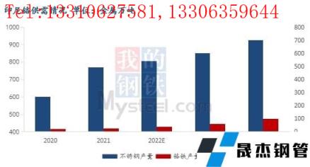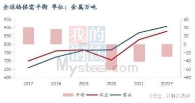 据统计,2021年印尼不锈钢粗钢产量494.2万吨,全部为300系,同比增长95.33%,其中印尼青山产量为359.2万吨,占比72%。2022年印尼新增投产计划共计200万吨,其中青山预计2季度新增100万吨产能,不排除新增投产直接用于生产高冰镍,若印尼青山持续减产不锈钢生产高冰镍,铬需求将继续下滑。预计2022年印尼不锈钢产量约为540万吨,较年初预期减少约30万吨,铬需求量减少约11万吨。