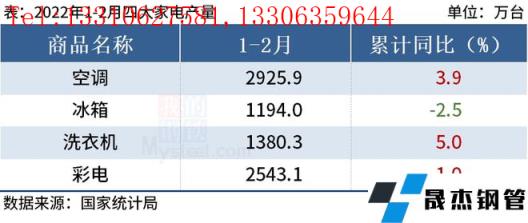 1-2月冰箱累计产量1194万台,同比下降2.5%。