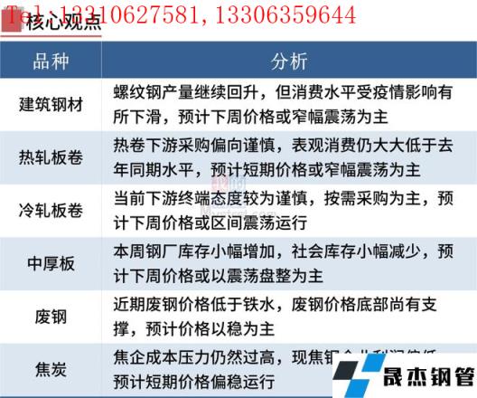 本周国内多地无缝厚壁钢管厂家运输受阻,钢市成交量明显下滑,短期厂内库存或进一步累积,抑制钢价反弹高度。不过,电炉厂已陷入亏损,加之预期稳增长政策将出,钢价底部支撑力度也强。当前市场复杂多变,国内疫情形势,稳增长政策落实情况以及国际局势变化仍是主要关注点。