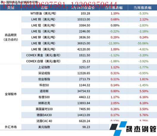 金融市场:伦镍开盘后连续3日跌停,周度大跌55.06%;全球股市中,中国股市下跌,欧美股市上涨;美元指数收于98.23,下跌0.91%。