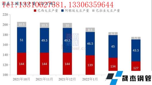 其一:南美大豆主产三国产量预估较高点回落近3000万吨,奠定CBOT大豆价格牛市的基石。从下图最近半年USDA月度数据走势来看,南美三国大豆产量不断下降,近3个月尤为明显。具体数据显示,2021年10月USDA供需报告中对巴西大豆产量预估1.44亿吨、阿根廷大豆产量预估5100万吨、巴拉圭大豆产量预估1050万吨;而最新的3月USDA数据显示,巴西大豆产量大降至1.27亿吨、阿根廷大豆产量下降至4350万吨、巴拉圭大豆产量下降至530万吨。面对南美三国大豆产量一再调降,CBOT大豆价格随之走高,同时南美大豆CNF价格水涨船高,传导至国内则是进口大豆成本不断攀升,助推豆粕价格居高不下。