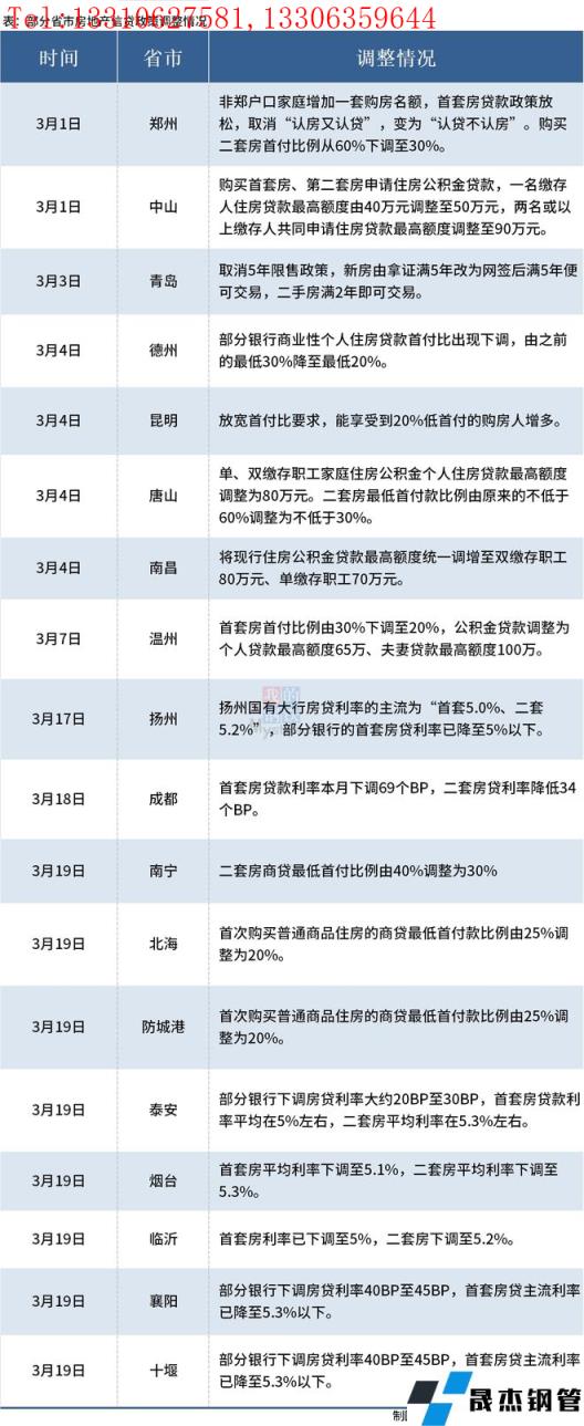 据不完全整理,3月以来,多地陆续调整房地产信贷政策,包括首套房和二套房首付比例下调,提高公积金贷款最高额度,房贷利率下调等。