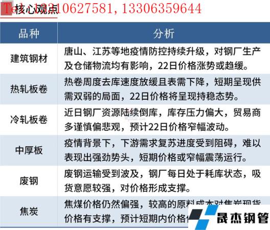 国内多省市升级调整疫情防控,下游工地施工进度放缓,导致钢市成交量下滑。无缝厚壁钢管厂家生产影响相对较小,但若唐山交通管制持续,不排除高炉厂也会减产或停产。短期内,钢市供需基本面偏弱,成本支撑力度较强。在重大利好政策出台以及全国疫情得到有效控制之前,钢价或继续震荡运行。