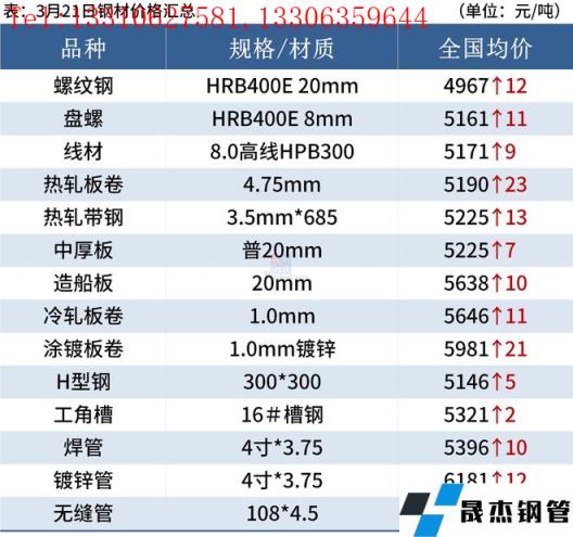 建筑厚壁无缝钢管:3月21日,全国31个主要城市20mm三级抗震螺纹钢均价4967元/吨,较上个交易日上涨12元/吨。近期疫情扩散,如唐山、江苏等地区疫情防控持续升级,对无缝厚壁钢管厂家生产端以及仓储物流方面均有影响,另一方面本周华东、南方部分省份持续下雨,或一定程度对冲宏观利好频出对市场情绪的影。综合各方面因素,预计22日国内建筑厚壁无缝钢管价格或将涨势趋缓。