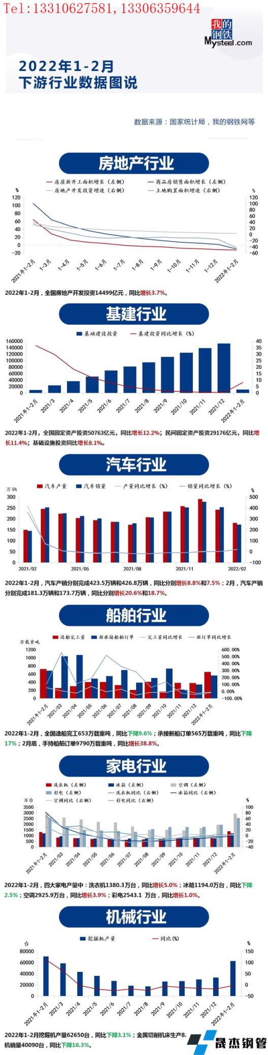 汇总了2022年1-2月部分下游用钢行业的运行情况。