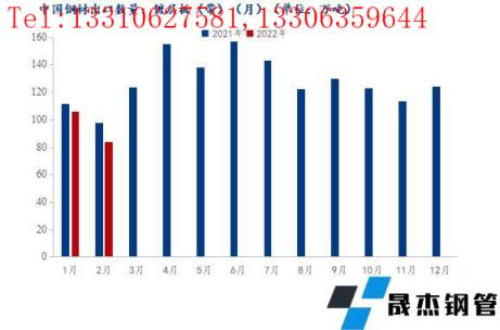 2022年2月我国镀锌板(带)出口总量共计83.52万吨,年同比下降14.5%;2022年1-2月份我国镀锌板(带)出口总量共计189.43万吨,年同比下降9.4%。