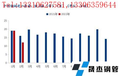 2022年2月我国镀锌板(带)进口总量共计12.21万吨,年同比下降24.1%;2022年1-2月份我国镀锌板(带)进口总量共计31.32万吨,年同比下降11.0%。