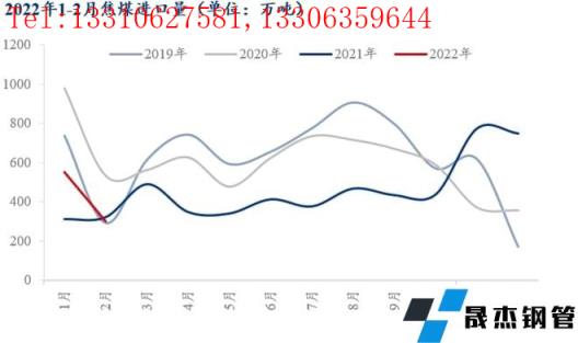 从最新公布的动力煤进口数据来看,2022年1-2月份中国动力煤累积进口2568万吨,同比下降近25%,创2017年以来1-2月动力煤累计进口量新低。其中,今年1月同比几乎零增长,环比下降约22%;而2月份同环比分别大幅下降55%和57%。