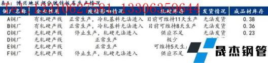 目前博兴地区涂渡生产企业大部分可正常生产,但部分工人因居家隔离影响返工,开工率整体降低,在产企业开工率50%,部分企业停工停产,厂内工人进行集体核酸。截至2022年3月21日,博兴地区八大库热卷库存12.32万吨,周环比减少8万吨,降幅39.17%;镀锌库存26.8万吨,周环比增加1.4万吨,增幅5.51%;彩涂库存8.5万吨,周环比增加2万吨,增幅30.76%。自爆发疫情以来,成交基本停滞。据了解,目前部分轧硬无缝厚壁钢管厂家生产受影响较大,因交通管制影响,冷轧基料并不能正常到达冷轧厂,在此影响下,部分轧机厂或面临被迫停机,市场轧硬资源将逐渐偏紧。目前各品种资源法无法出入博兴是库存波动的主要原因,且短期内涂渡库存有明显增加趋势。