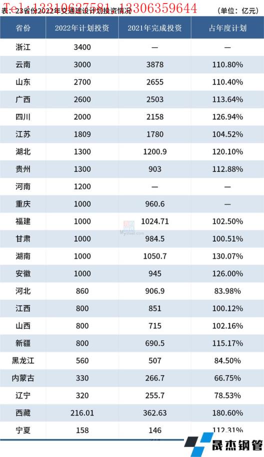 据不完全统计,截至3月23日,全国有23个省份召开交通运输建设工作会议并公布其2022年交通建设计划投资额,总投资近3万亿。其中浙江省交通建设计划投资3400亿元,排名位居第一。2021年,上述23省份共完成交通投资超2.4万亿,其中云南远超其他省份,完成投资3878亿元。