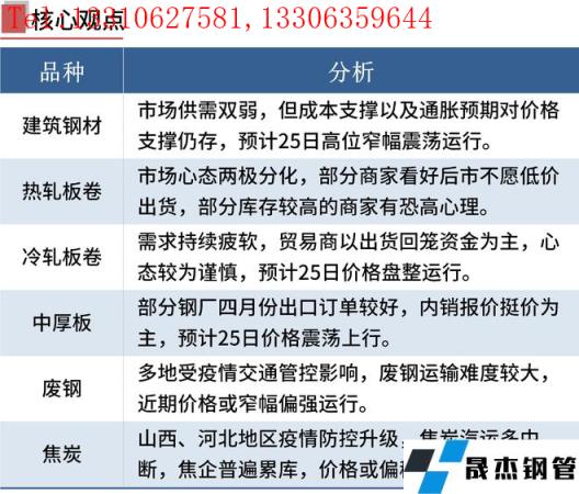 建筑厚壁无缝钢管:3月24日,全国31个主要城市20mm三级抗震螺纹钢均价4983元/吨,较上个交易日上涨18元/吨。本周螺纹钢周产量连续第六周增加,总库存由降转升,厂库连续第二周出现回升,表观消费基本持平。目前来看,近期全国疫情呈现局部高度聚集和多点散发态势,多个地区厚壁无缝钢管市场供需面均有不同程度影响,虽然部分区域陆续恢复运行,但同时亦有其他区域疫情管控加严对于物流运输及工程施工形成制约,影响终端需求释放。目前现货市场仍处于供需双弱的局面,但成本支撑以及通胀预期对价格支撑仍存。因此预计25日国内建筑厚壁无缝钢管价格或将高位窄幅震荡运行为主。