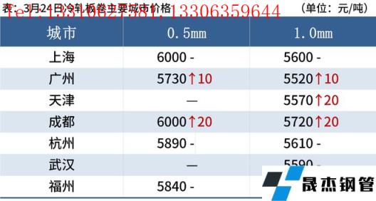 冷轧板卷:3月24日,全国24个主要城市1.0mm冷卷均价5656元/吨,较上个交易日上涨10元/吨。今日早间市场报价纷纷上涨20-30元/吨,询单人数明显增加,但由于疫情影响,需求持续疲软,多数市场存在暗降优惠现象,贸易商以出货回笼资金为主,心态较为谨慎。库存方面,据不完全统计,现冷轧无缝厚壁钢管厂家库存38.68万吨,周环比增加4.74万吨,社会库存140.37万吨,周环比减少2.75万吨,周消费量81.67万吨,环比减少1.45万吨。综合来看,故预计25日国内冷轧板卷价格或将盘整运行。