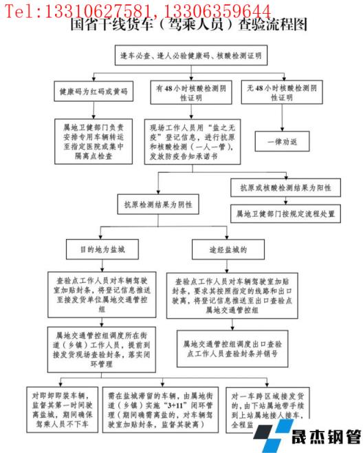 就当前严峻的疫情防控需要,盐城市内各公路查验点迅速地全面启动疫情防控通道查验工作,凡是进入车辆,“逢车必查,逢人必验”,并就此出台了高速公路、国省干线货车查验管理的详细细则。由此,盐城市各厚壁无缝钢管市场及码头港口货物运输受到管制,笔记就部分商户做简单了解,针对近期情况做简单汇总。