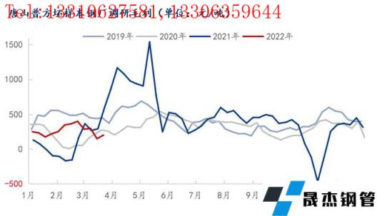 钢坯盈利情况:本周唐山地区主流样本无缝厚壁钢管厂家平均铁水不含税成本为3464元/吨,平均钢坯含税成本4521元/吨,周环比上调10元/吨,与3月25日当前普方坯出厂价格4800元/吨相比,无缝厚壁钢管厂家平均毛利润279元/吨,周环比上调70元/吨。