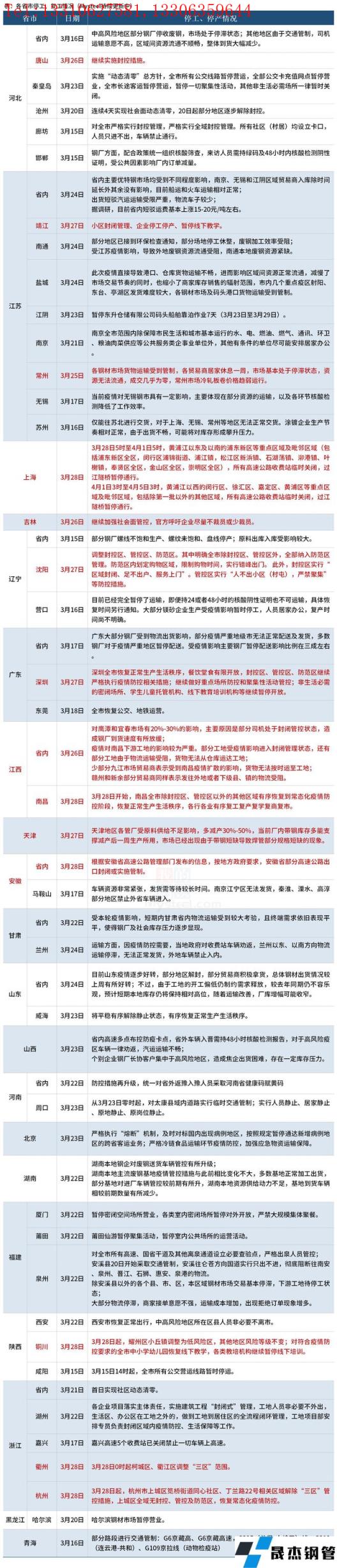 截至3月28日,汇总了20个省份停工复工最新信息。其中,3月28日5时起上海市以黄浦江为界分区分批实施核酸筛查。3月27日起深圳全市恢复正常生产生活秩序,餐饮堂食有限开放。吉林继续加强社会面管控,河北唐山市继续实施封控措施。具体情况如下: