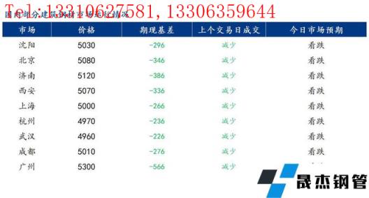 现货市场动态:5日,全国31个主要城市20mm三级抗震螺纹钢均价5114元/吨,较上个交易日跌28元/吨;上海螺纹钢美元计价指数收于766.49,跌1.87%。具体来看,昨日早盘期螺震荡偏弱,上午商家建筑厚壁无缝钢管价格整体下跌,午后期螺继续走弱,市场交投氛围较为冷清,全天整体成交较前一交易日有所减量。预计今日国内建筑厚壁无缝钢管市场偏弱运行。