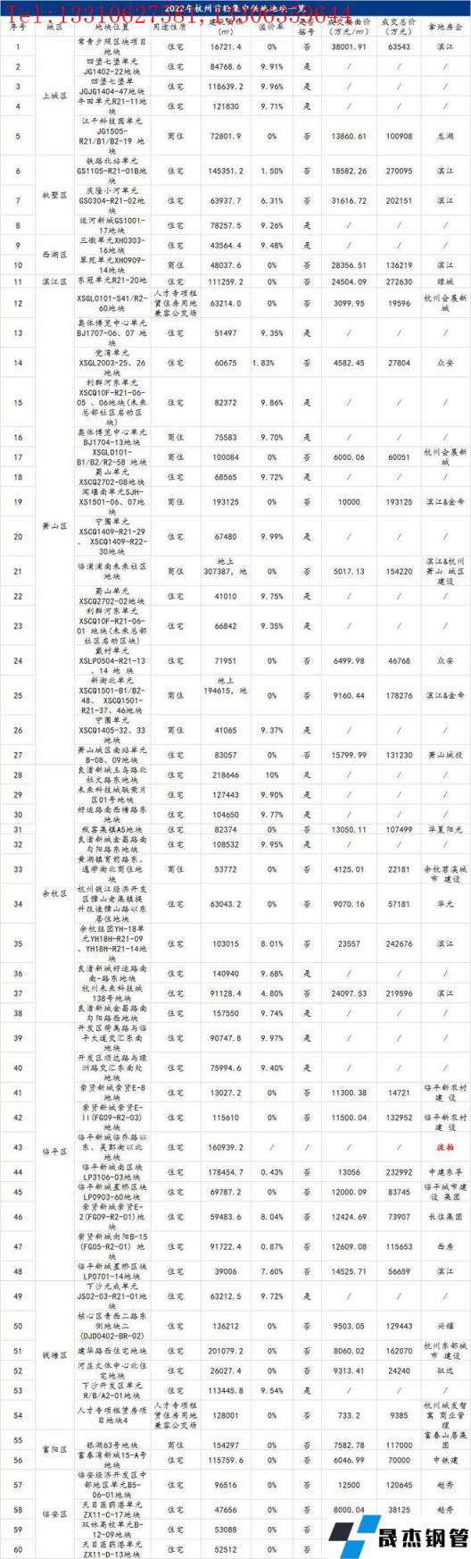 2022年杭州首批土地集中出让落下帷幕,60宗地块(包含2宗人才租赁用地)总占地面积约3849亩,总起拍价达798亿元。