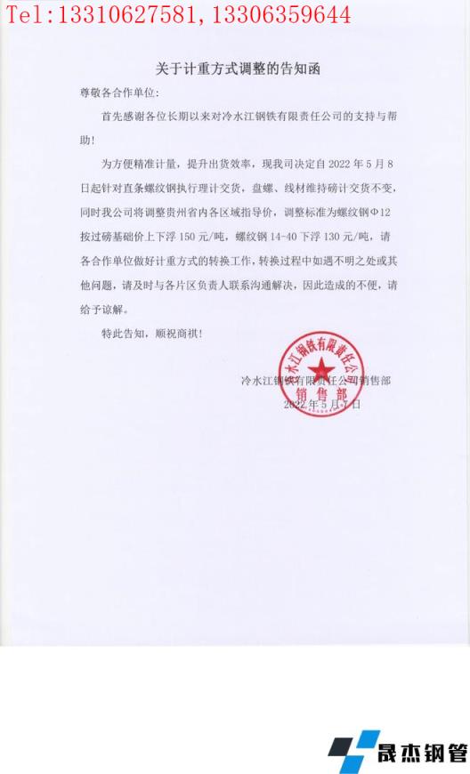 免责声明:本网站(港澳资料大全)刊载的“冷水江钢铁有限责任公司关于对贵州区域计重方式调整的告知函”等均源于网络,版权归原作者所有,且仅代表原作者观点,本文所载信息仅供参考。转载仅为学习与交流之目的,如无意中侵犯您的合法权益,请及时联系删除。本网站刊登此篇文章并不意味着本站赞同其观点或证实其内容的真实性,我们不对其科学性、严肃性等作任何形式的保证。如果侵犯了您的版权,请尽快联系我们予以撤销,谢谢合作! 请查看相关产品 厚壁钢管,厚壁无缝钢管,厚壁管,无缝钢管厂,港澳资料大全