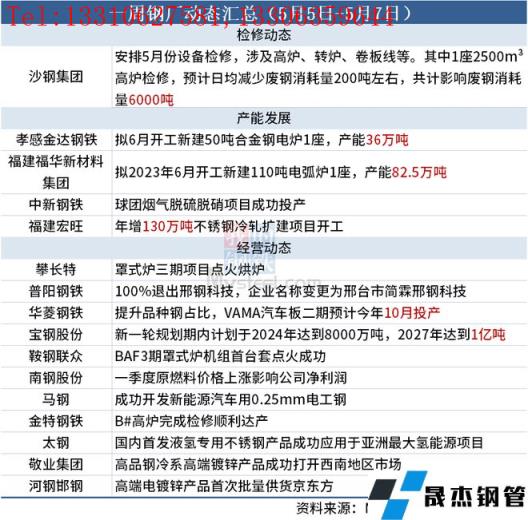 据不完全统计,本周(5月5日-5月7日)有1家无缝厚壁钢管厂家发布检修计划,具体如下: