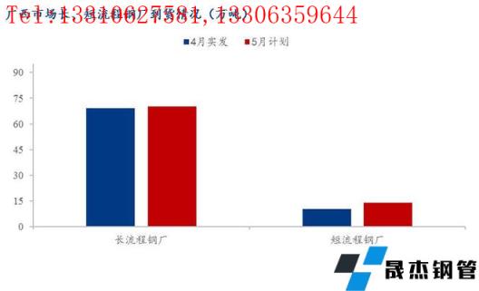 1、5月份广西地区建筑材省内长流程无缝厚壁钢管厂家计划供应量共计70.3万吨,环比增加1.2万吨,增幅为1.74%;短流程无缝厚壁钢管厂家到货量为13.9万吨,环比增加3.5万吨,增幅为33.65%。