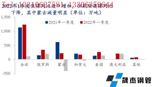 2月以来,国际无缝厚壁钢管厂家补库需求旺盛、俄罗斯出口受阻叠加澳洲雨季频繁等因素,引起国际焦煤价格大幅波动,以澳煤为代表的海运煤价格频创新高,最高时达到599美元/吨,截至5月6日,澳一线主焦煤FOB价仍高达516.75美元/吨,与国内焦煤价格的较大差距使得美、加等海运煤逐步失去进口优势。