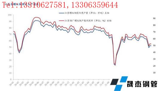 图二:江苏省螺纹钢产量及开工走势图