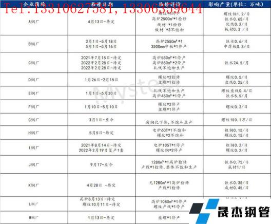 附:江苏省无缝厚壁钢管厂家库存及检修情况