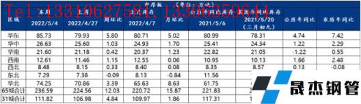 库存方面:据统计,建材方面,以螺纹钢为例,从三大区域来看,本周华东和南方分别环比增加8.5万吨和5.2万吨,北方环比减少10.08万吨;从七大区域来看,除华北、东北和西北,其余各区域均有不同程度增加。从城市来看,杭州、南京、南昌、武汉等为主要增库城市,北京、兰州、贵阳等为主要降库城市。其中国内主要城市螺纹钢、线材总库存为1096.69万吨,较上周(2022年4月29日)增加2.18万吨,增幅为0.20%。同比减少30.10万吨或减幅为0.20%。