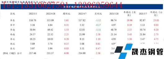 表1:全国建筑厚壁无缝钢管库存汇总(4.8-4.15)