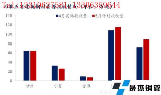 5月西北区域无缝厚壁钢管厂家计划总产量约为301.64万吨,较4月实际产量增加6.3万吨左右,其中陕西和新疆分别增加7.2万吨和6.6万吨,甘肃无明显变化,青海和宁夏略有减量。