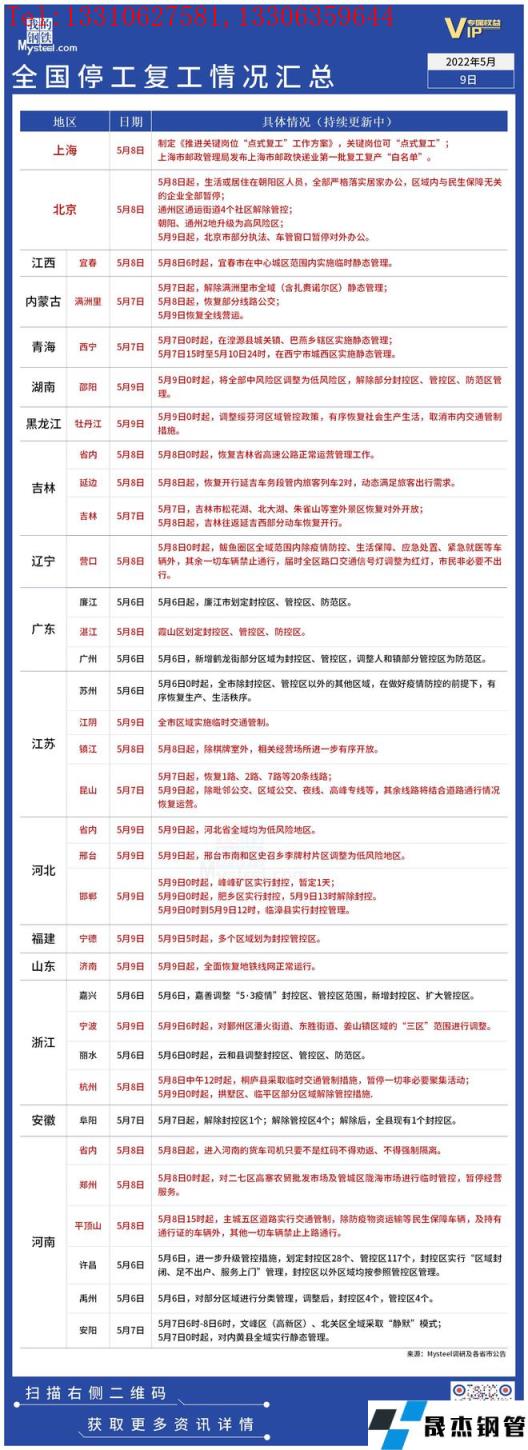 疫情影响丨全国停工复工情况汇总(5月7日)