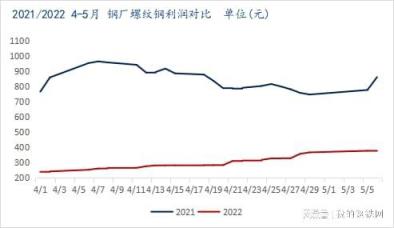 2022年4月螺纹钢社会库存为6464.2万吨,2021年为7120.72万吨,同比下降9.2%,两年同期相比社会库存变化存在明显差异,21 年4月初较月末库存消耗了近340万吨,22年受疫情影响明显,消耗则不足百吨。足见“动态清零”、“区域静默”对市场活力的影响不容小觑。