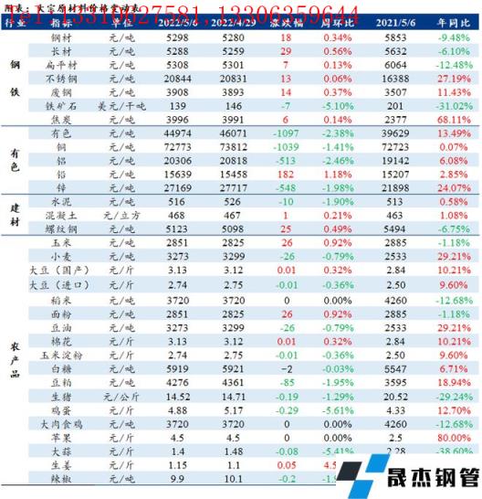不锈钢:本周不锈钢现货价格继续呈现稳中略走强趋势,主流无缝厚壁钢管厂家盘价较节前持平,现货价格基本维持节前的水平。库存方面,本周全国主流市场不锈钢库存有一定增加,主要体现在无锡市场及地区性市场,且以江苏某大型无缝厚壁钢管厂家资源到货为主。5月3日无锡江阴市突发疫情,4日开始江阴市全域进入管控状态,目前江阴码头货物发运整体受到影响,来往车辆管控升级,近期部分涉及江阴港到船的无缝厚壁钢管厂家资源发运将受到较大影响,部分无缝厚壁钢管厂家在临时更换运输方式或更换到货码头。目前300系高库存仍将抑制价格上行,加之多地疫情反复,需求难以释放且物流不畅,预计短期304价格震荡偏弱运行概率较大。