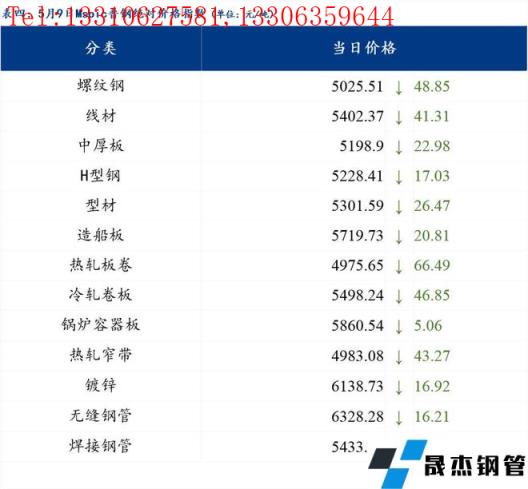 5月9日普钢绝对价格指数变化:综合指数5221.12,下跌43.46;螺纹钢指数5025.51,下跌48.85;线材指数5402.37,下跌41.31;热轧板卷指数4975.65,下跌66.49;冷轧板卷指数5498.24,下跌46.85;中厚板指数5198.9,下跌22.98。