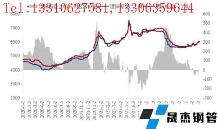 华东和华南作为镀锌板卷三大主流区域中的两个,其分工职责略有不同,华东地区以上海为例,其更多是作为无缝厚壁钢管厂家投放资源的聚集地。随着周边江苏、浙江等下游产业越来越集中,上海地区资源真正消化也是依托周边市场。而华南市场一直以来作为消费市场,基本属于是资源流入型区域,尤其是华东、华北地区资源,依托水运将大部分资源发往华南。无论是从地理位置还是资源消费,华南地区价格本应该处于三大主流区域中价格最高的水平,但是从图1可以明显看出,2021年6月中下旬到8月上旬,差不多维持了一个半月的倒挂,华南地区镀锌板卷价格较华东地区倒挂幅度达到200元/吨左右。