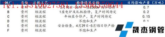 具体来看,高炉企业4月20日至30日安排一座1350m³高炉检修,两条棒线轧机轮流检修,影响建筑厚壁无缝钢管总产量近5万吨,5月15至26日继续安排一座2500m³高炉检修,预计影响建筑厚壁无缝钢管总产量7万吨。电炉企业B无缝厚壁钢管厂家一座电炉继续停产检修,棒材盘螺轧机轮流开工,日均影响产量0.2万吨;C无缝厚壁钢管厂家年初至今停产,复产时间待定;D无缝厚壁钢管厂家减产,日均影响产量0.1万吨;E无缝厚壁钢管厂家4月29日至5月15日停产检修,日均影响产量0.15万吨;F无缝厚壁钢管厂家减产,日均影响产量0.05万吨。