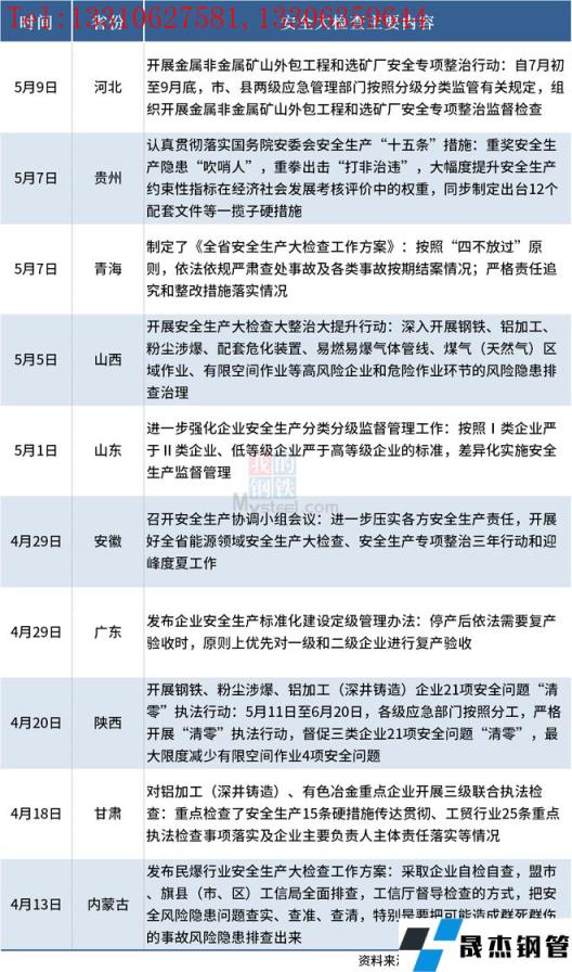 据不完全整理,全国10省开展安全生产大检查大整治行动,全面落实强化安全生产工作。具体情况如下: