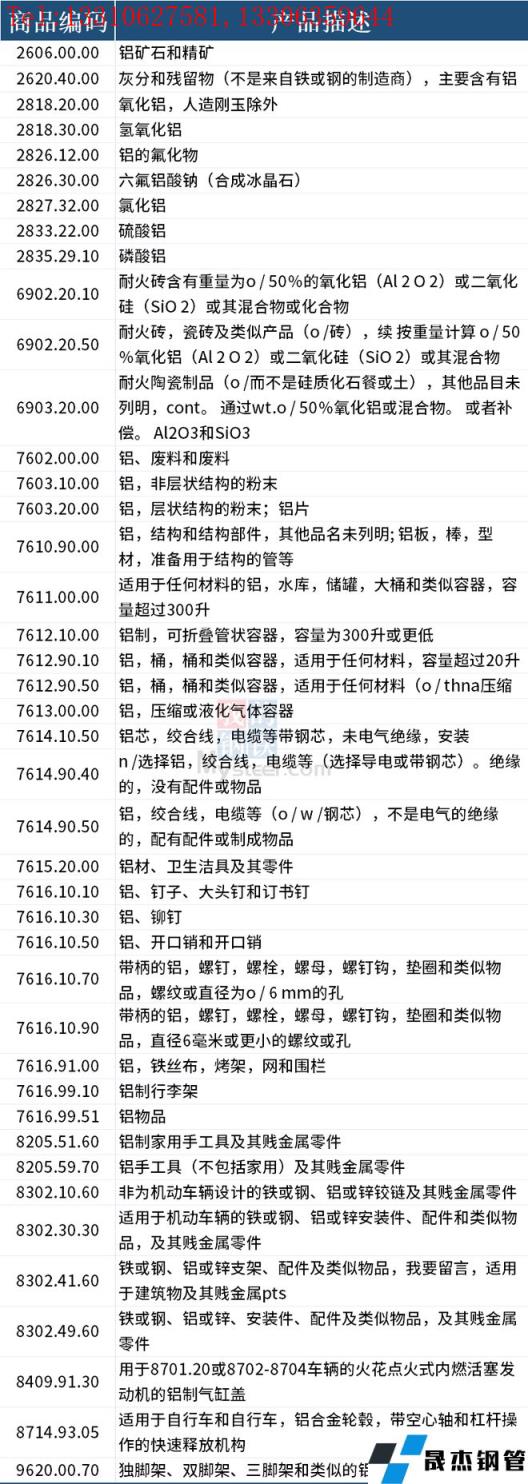 据不完全整理,美国征收中国产品关税的清单,涉及铝相关产品如下:
