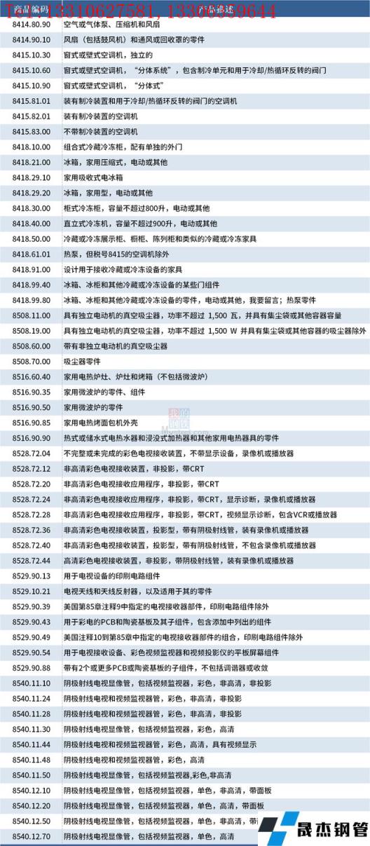 据不完全整理,美国征收中国产品关税的清单,涉及家电类产品如下: